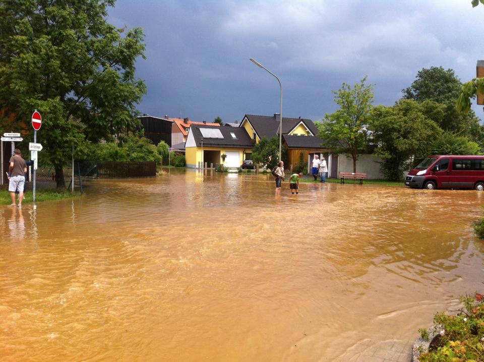 Der normalerweise so gemächlich dahinfließende Thiersbach am Ortseingang wurde binnen kürzester Zeit zum reißenden Fluss, der über die Ufer trat. Etliche Keller liefen voll, Autos soffen regelrecht ab. „Die Wassermassen haben sogar Teile der Straße weggerissen“, sagt Bernd Hofmann. Auch der Radweg musste zwischenzeitlich wegen Beschädigungen gesperrt werden.